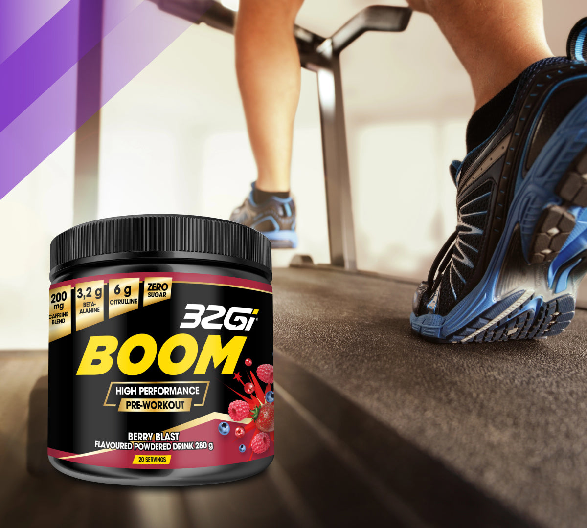 32Gi® Boom is a pre-workout for endurance athletes designed to improve mental and physical focus to bolster performance. 32Gi® BOOM contains clean proven ingredients.