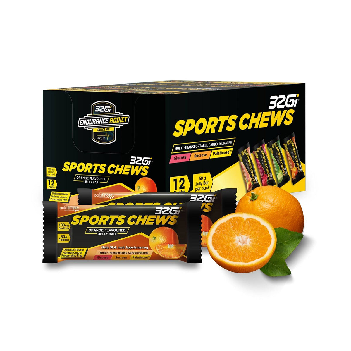 - REPLACE YOUR GELS - Easy to eat, will not get stuck in your teeth or block your airways. 32Gi® Sports Chews are the perfect companion for the run, bike, or anywhere on the go.